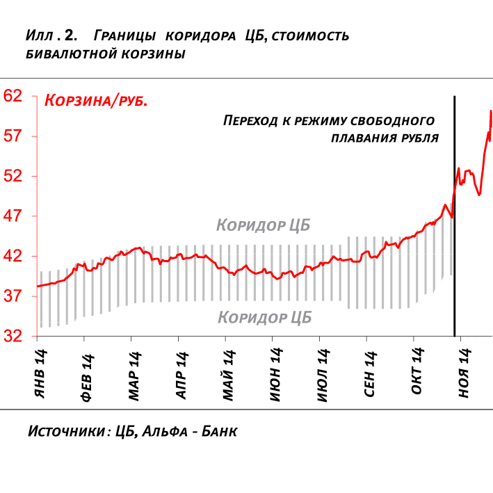 Размах отклонения поднимает вопрос о том, насколько повышение ставки будет политически приемлемым для ЦБ. Альтернативной опцией, которая приходит на ум, может стать ужесточение доступа банков к фондированию ЦБ. Две причины побуждают нас более серьезно отнестись к этой возможности. Во-первых, переход к свободному плаванию предусматривает отсутствие необходимости для ЦБ предоставлять банкам ликвидность. Ранее ЦБ рассматривал вливания рублевой ликвидности как способ компенсировать эффект валютных интервенций. Технически, принцип “нет интервенций – нет новых денег ” в случае с банками должен подтолкнуть ставку к новому равновесному уровню.