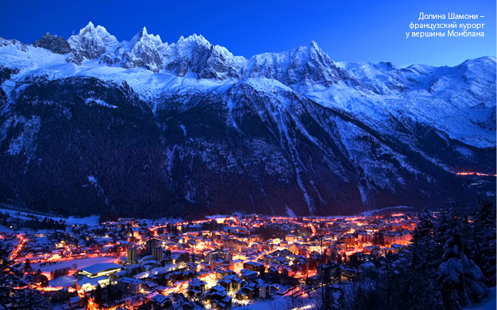 Долина Шамони внесена в список ландшафтов, составляющих мировое достояние. От территории Италии ее отделяют всего 15 км, столько же – от Швейцарии, но лакомый кусок альпийского пирога достался Франции. Курорт у вершины Монблана радует непревзойденным сервисом, развлекательной программой и выдающимися возможностями для катания. Несмотря на сотни километров спусков, прославила эти места легендарная Белая долина – внетрассовый путь по леднику на высоте почти 4000 м.